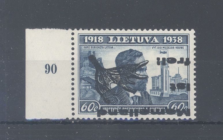 Memel Lokalausgabe Michel Nummer IV K, 60. Cent. Freimarke 1939 mit kopfstehendem Aufdruck ** vom Seitenrand. Selten einmal angeboten.