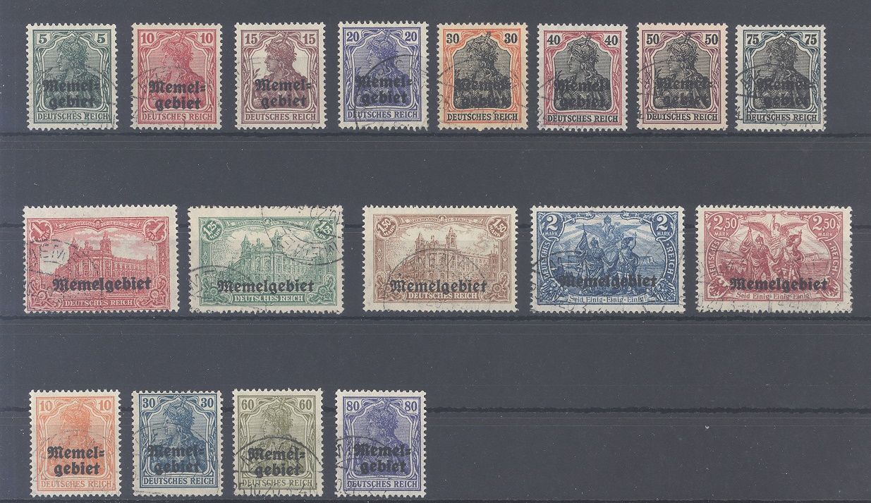 Memel Michel Nummer 1/17, Freimarken 1920 gestempelt, dabei auch ein paar schwächere Stempel.