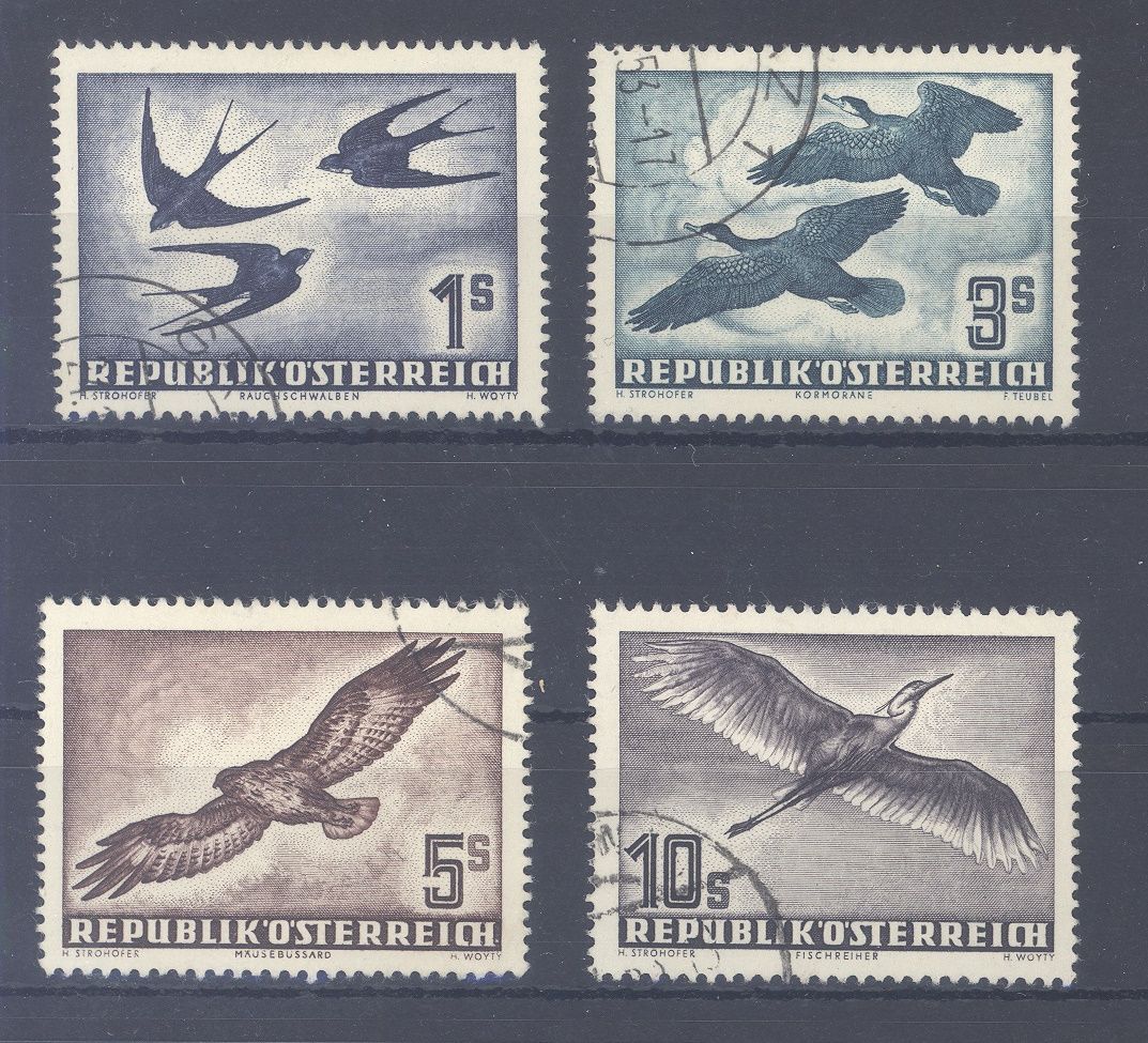 Österreich Michel Nummer 984/87, Vögel 1953 gestempelt.