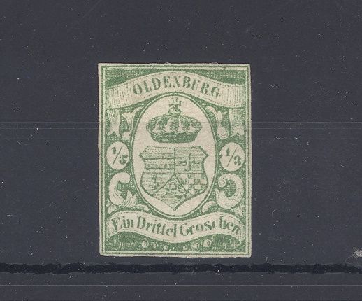 Oldenburg Michel Nummer 10b, 1/3 Groschen Freimarke 1861 in der guten Farbe b ungebraucht (*), ein schöner Wert. Der Wert ist signiert.