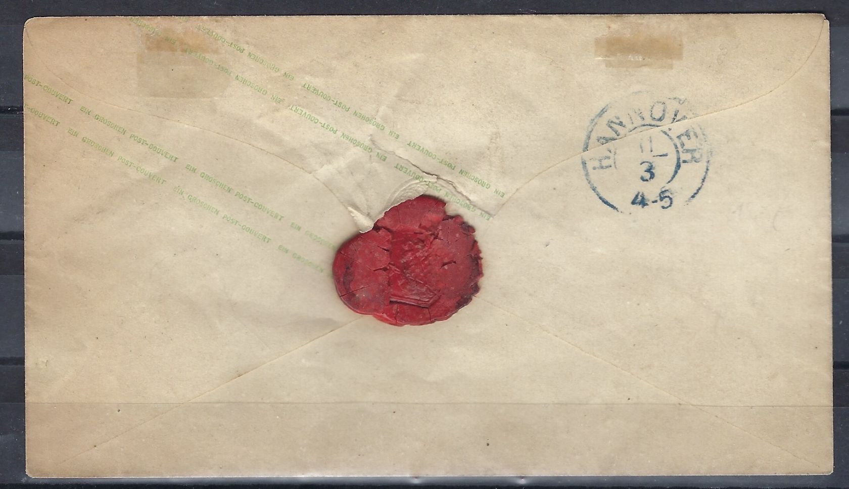 Hannover, Ein-Groschen-Ganzsache, befördert von Catlenburg nach Hannover, adressiert an Senator Culemann, Inhaber der damaligen Königlichen Hannoverschen Buchdruckerei Culemann. Seltene Gelegenheit, ein Stück hannoverscher Geschichte zu erwerben.