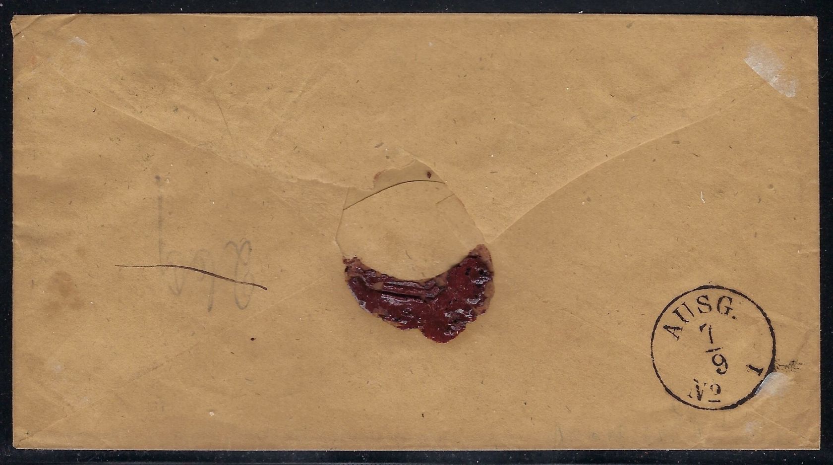 Preußen Mi 17 im senk. Paar als MeF Einschreibebrief befördert von Berlin nach Frankfurt am Main, vorderseitig Ra3 Berlin Post Exp. 11 / Anhalt. Bahnhof / 6.9.67 9-10 v. sowie roter K2 Frankfurt am Main, rückseitig Ausgabestempel 7/9 N2 1