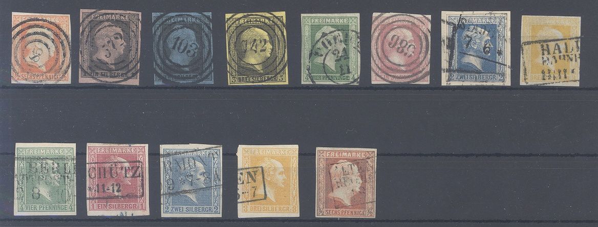 Preußen Michel Nummer 1/13, Freimarken 1850/60 gestempelt. Stets billigste Farben gerechnet.