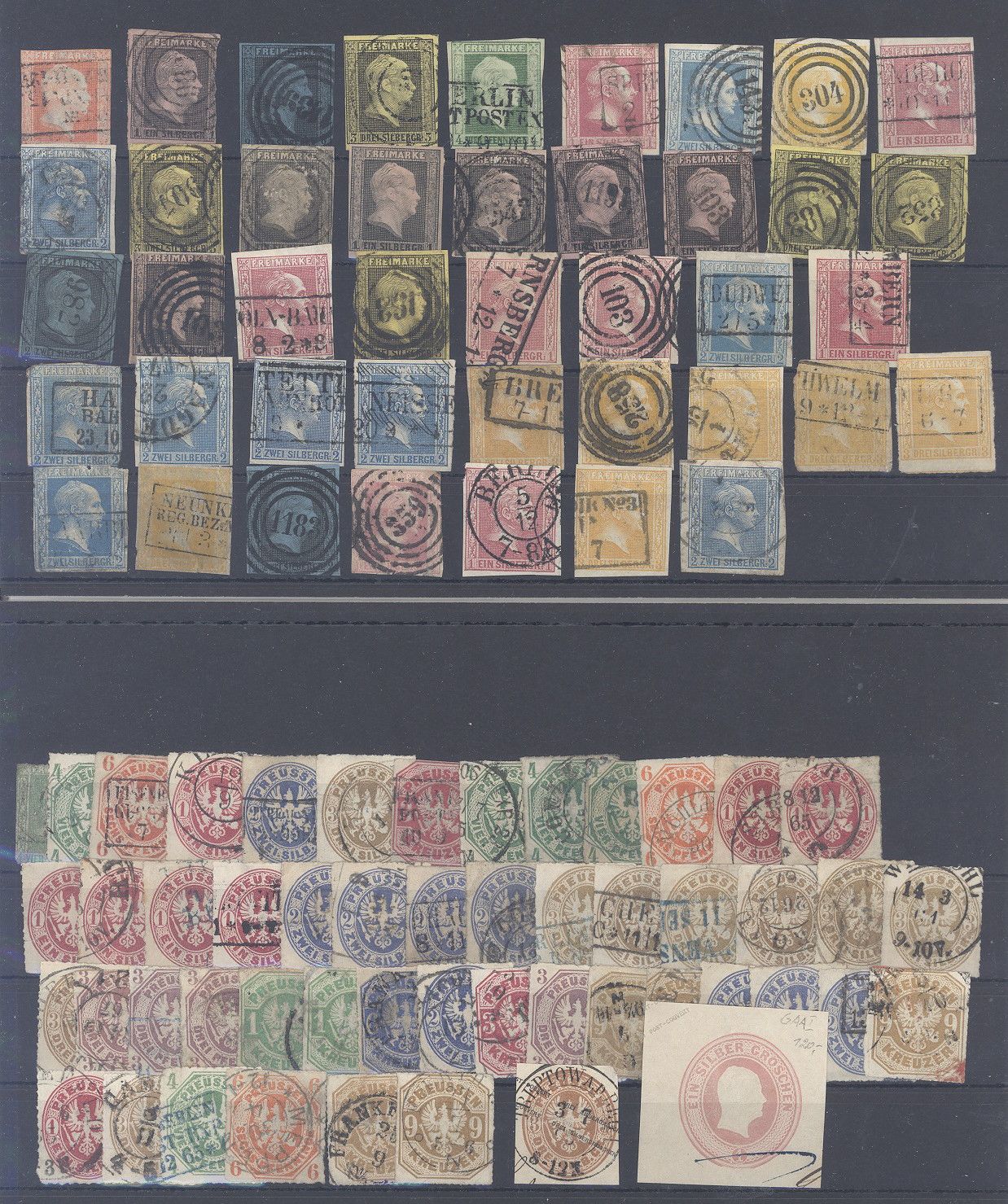 Preußen, umfangreicher meist gestempelter Posten in wie üblich unterschiedlicher Erhaltung auf zwei Steckkarten, einfach zusammengesteckt, dabei auch Mi.Nr. 1/8, viele schöne Stempel. Vollkommen unberechnet, sollte angesichts der Materialfülle ein nettes Schnäppchen sein!