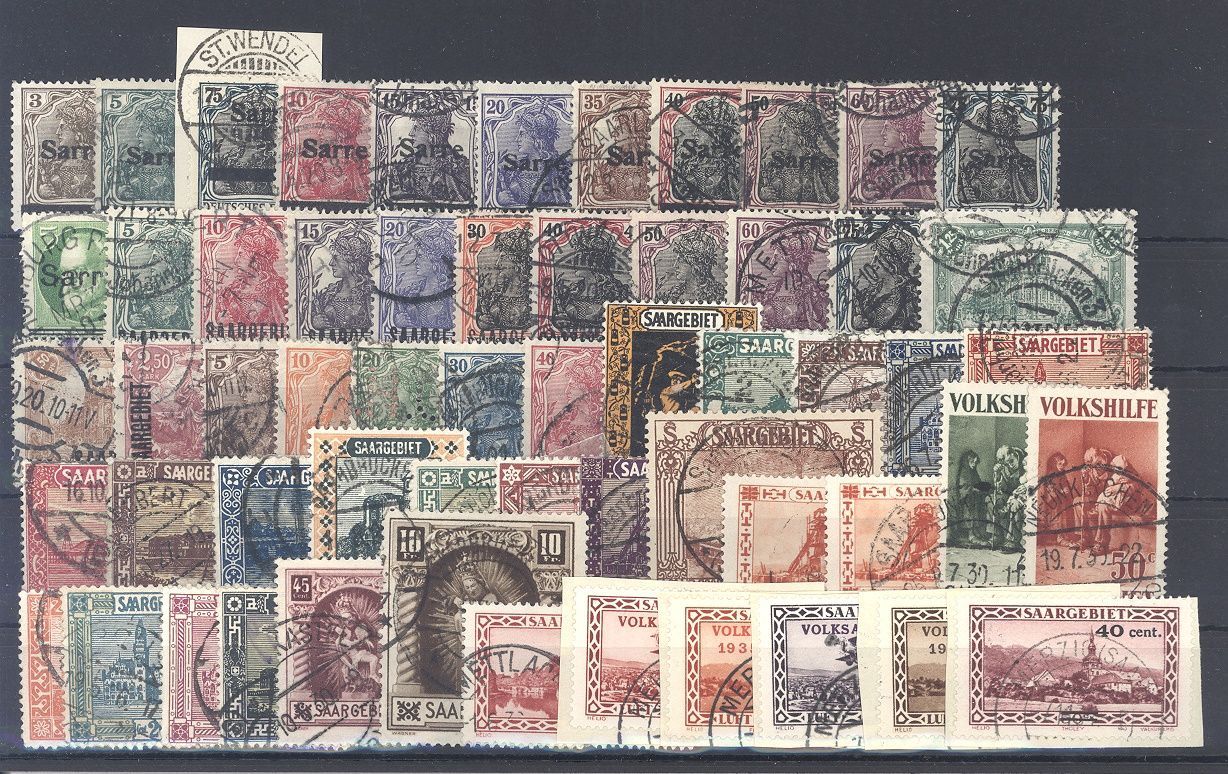 Saargebiet, gestempelter Posten auf Steckkarte, dabei auch bessere Werte, einfach zusammengesteckt. Vollkommen unberechnet, sollte ein nettes Schnäppchen sein...