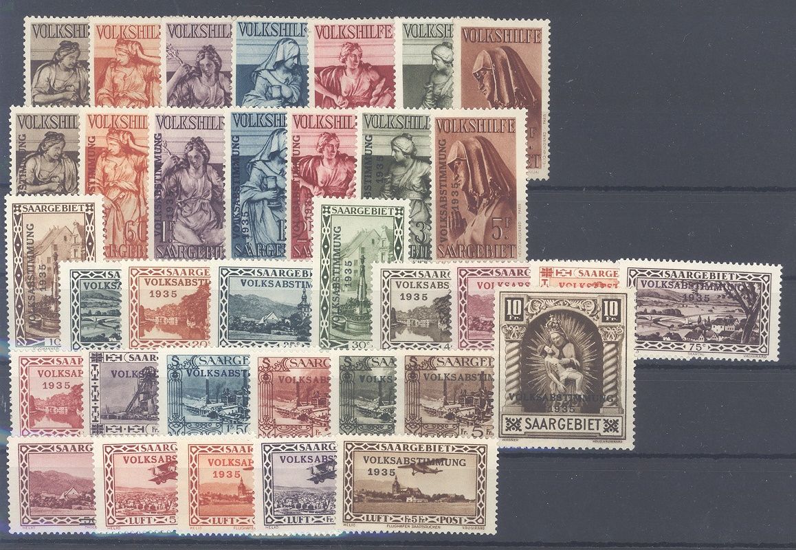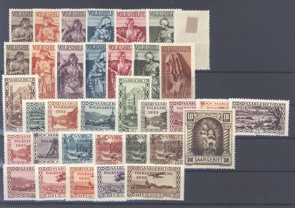 Saargebiet Michel Nummer 171/205, Jahrgang 1934 allermeist ungebraucht *, die Michel Nummer 177 ist ungebraucht (*) und blieb unberechnet, der Rest ist ungebraucht *.