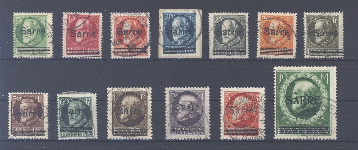 Saargebiet Michel Nummer 18/31, Freimarken 1920 fast komplett */**, es fehlt nur die Michel Nummer 30. Jeder Wert ist geprüft.