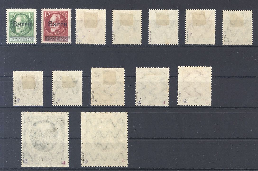 Saargebiet Michel Nummer 18/31, Freimarken 1920 ungebraucht *, teilweise stockig. Alle wichtigen Werte sind geprüft mit Altprüfung.