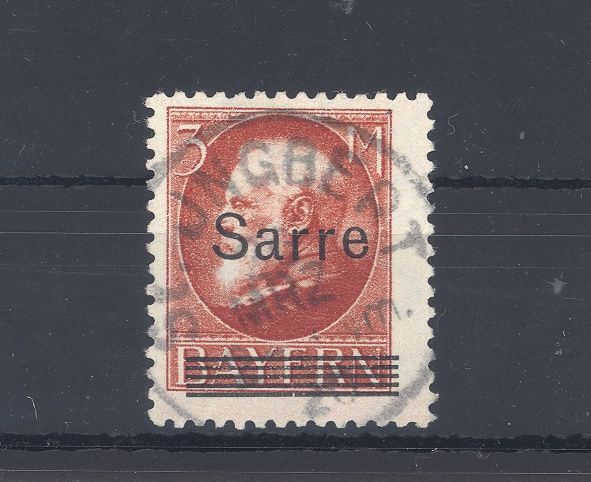 Saargebiet Michel Nummer 29, 3 Mark Freimarke 1920 gestempelt mit klarem Stempel aus St. Ingbert. Der Wert ist geprüft mit Altprüfung.