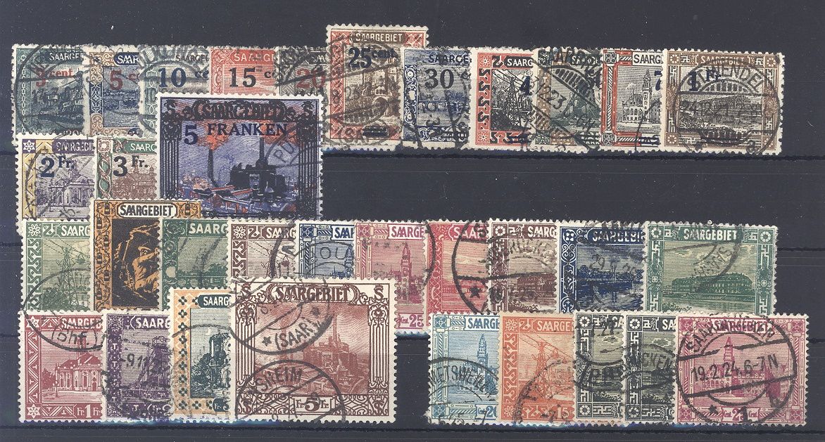 Saargebiet Michel Nummer 70/83 und 84/101 aus Freimarken 1921 gestempelt.