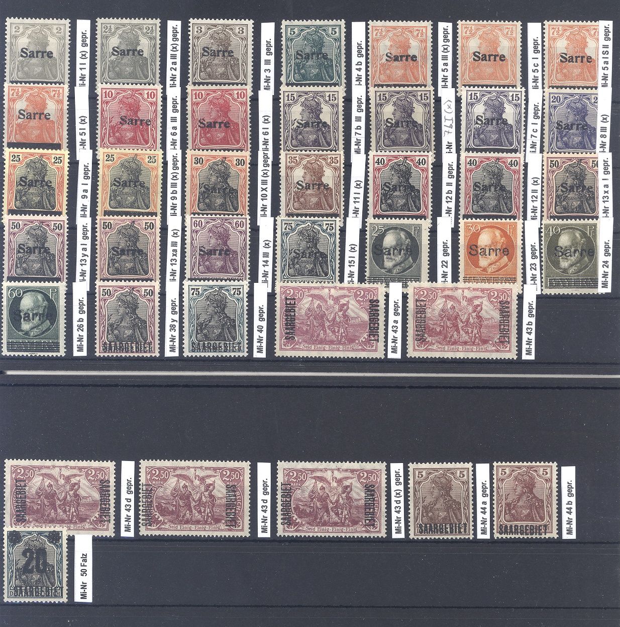 Saargebiet, recht umfangreicher */** Posten Sarre Ausgaben auf zwei Steckkarten, meist geprüft auf zwei Steckkarten, einfach zusammengesteckt. Bereits die Prüfgebühren haben so einiges gekostet...