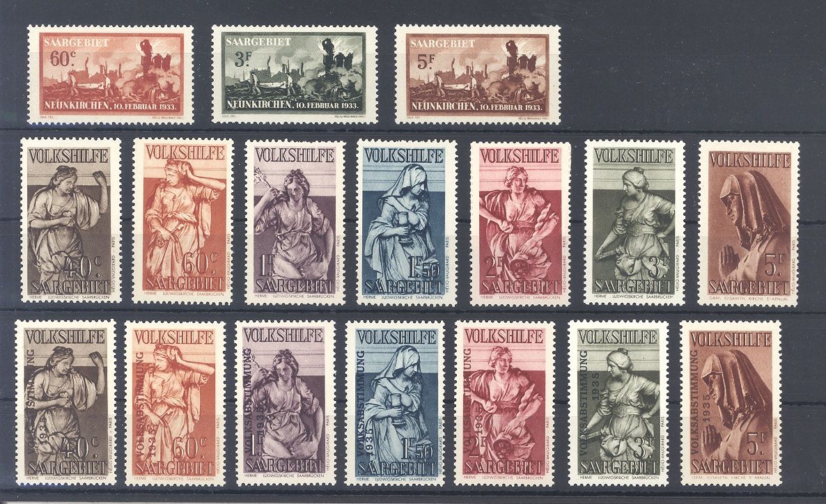Saargebiet, ungebrauchter * Posten aus den Jahren 1933/34 bestehend aus Michel Nummer 168/70, 171/77 und 199/205.