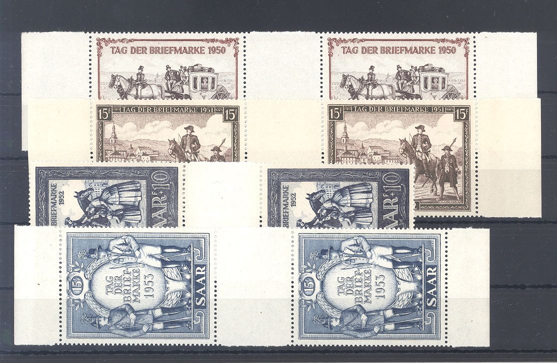 Saarland, vier verschiedene Zwischenstegpaare als Posten. Es sind die Michel Nummer 291, 305, 316 und 342 vorhanden.