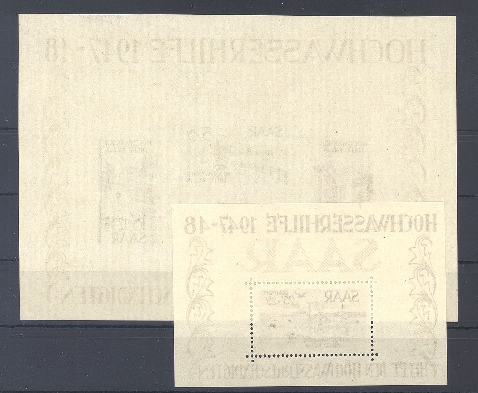 Saarland Block 1/2, Hochwasserblockpaar 1948 mit Gummimängeln, daher als ungebraucht * gerechnet.