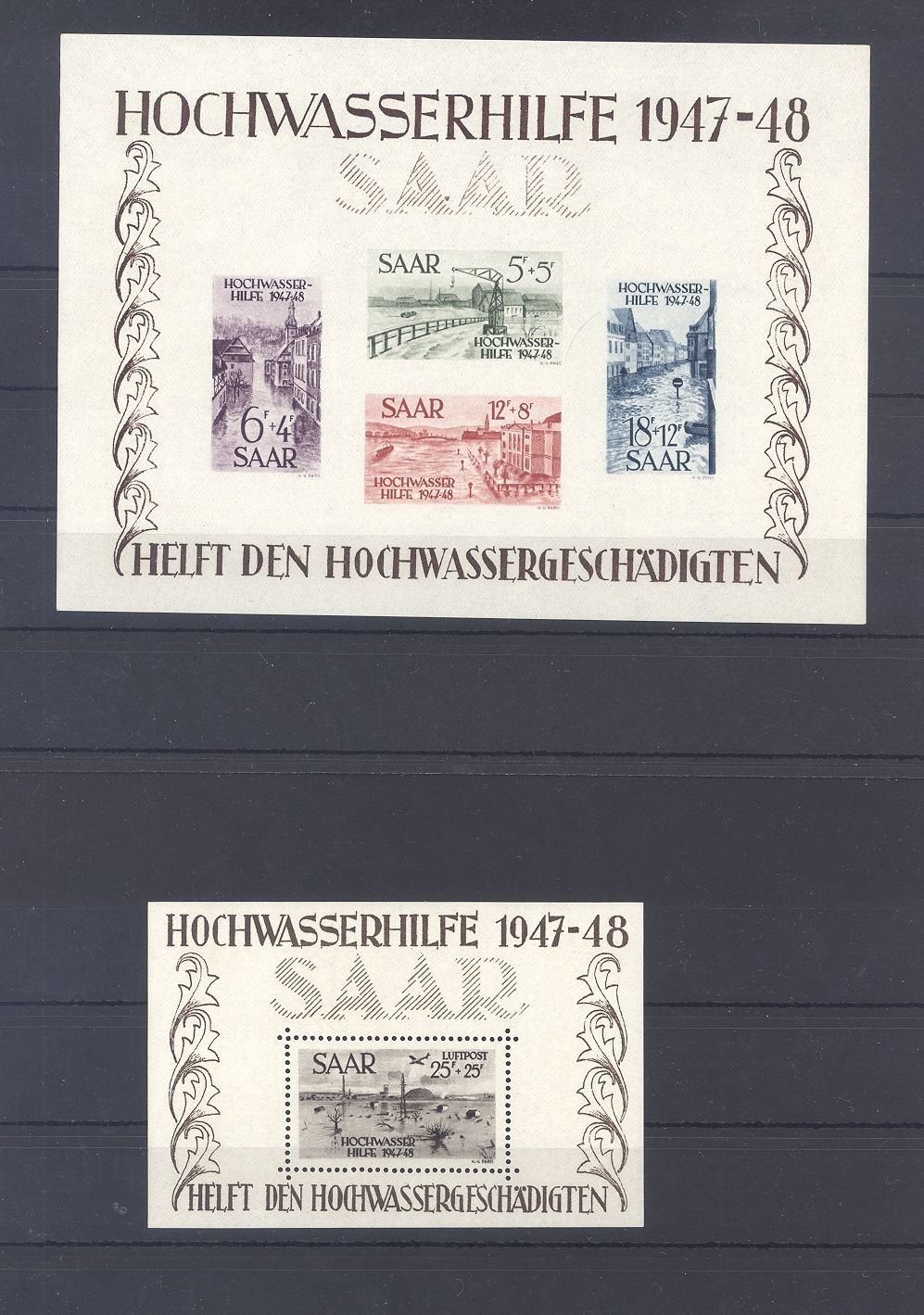 Saarland Block 1/2, das Hochwasserblockpaar 1948 **/*. Der Block 1 ist ungebraucht *, der Block 2 ist **.