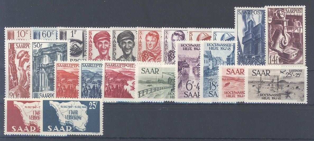 Saarland Michel Nummer 239/61, der Jahrgang 1949 ohne die Blöcke in den Hauptnummern komplett **.