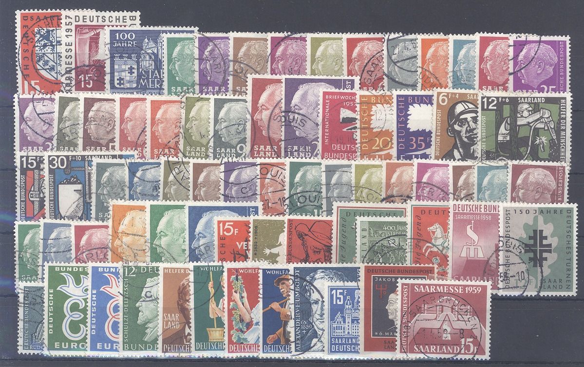 Saarland, Michel Nummer 379/448, das Saarland als Teil der BRD komplett gestempelt mit auch ein paar wenigen Wellenstempeln.