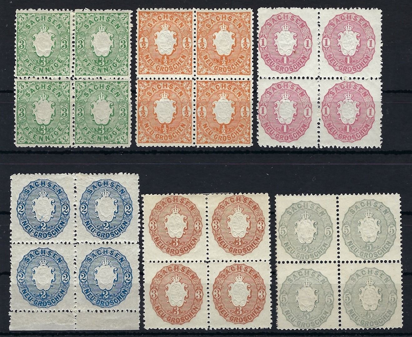 Sachsen, Mi 14-19 */**, untere Paare **, Mi 19 waagerecht gefaötet und rechts etwas angetrennt