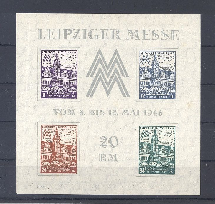 SBZ Block 5x, Messeblock 1946 ** mit einem stärkeren senkrechten Bug und ganz leicht fleckig. Billigst