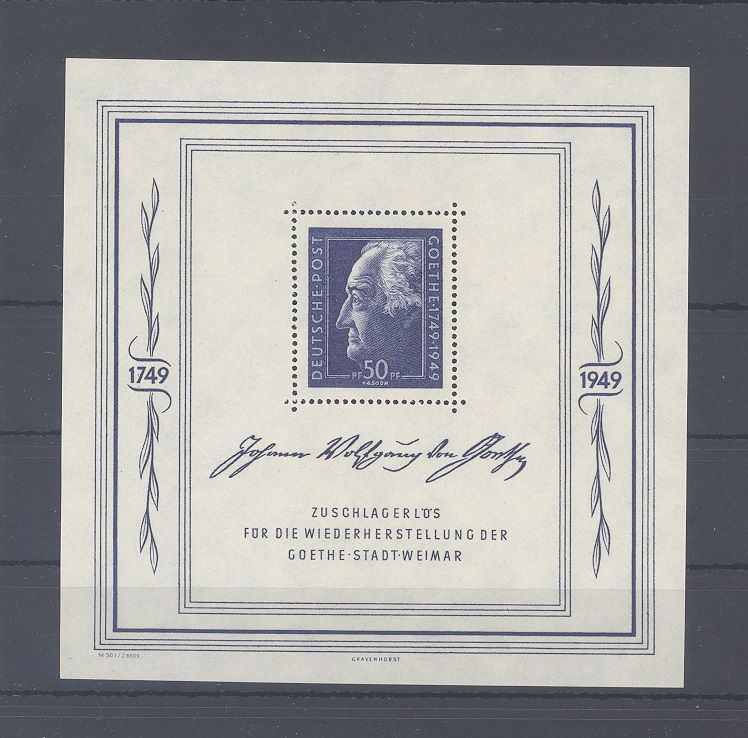 SBZ, Block 6, Goethe Block 1949 **, rückseitig leicht fleckig.