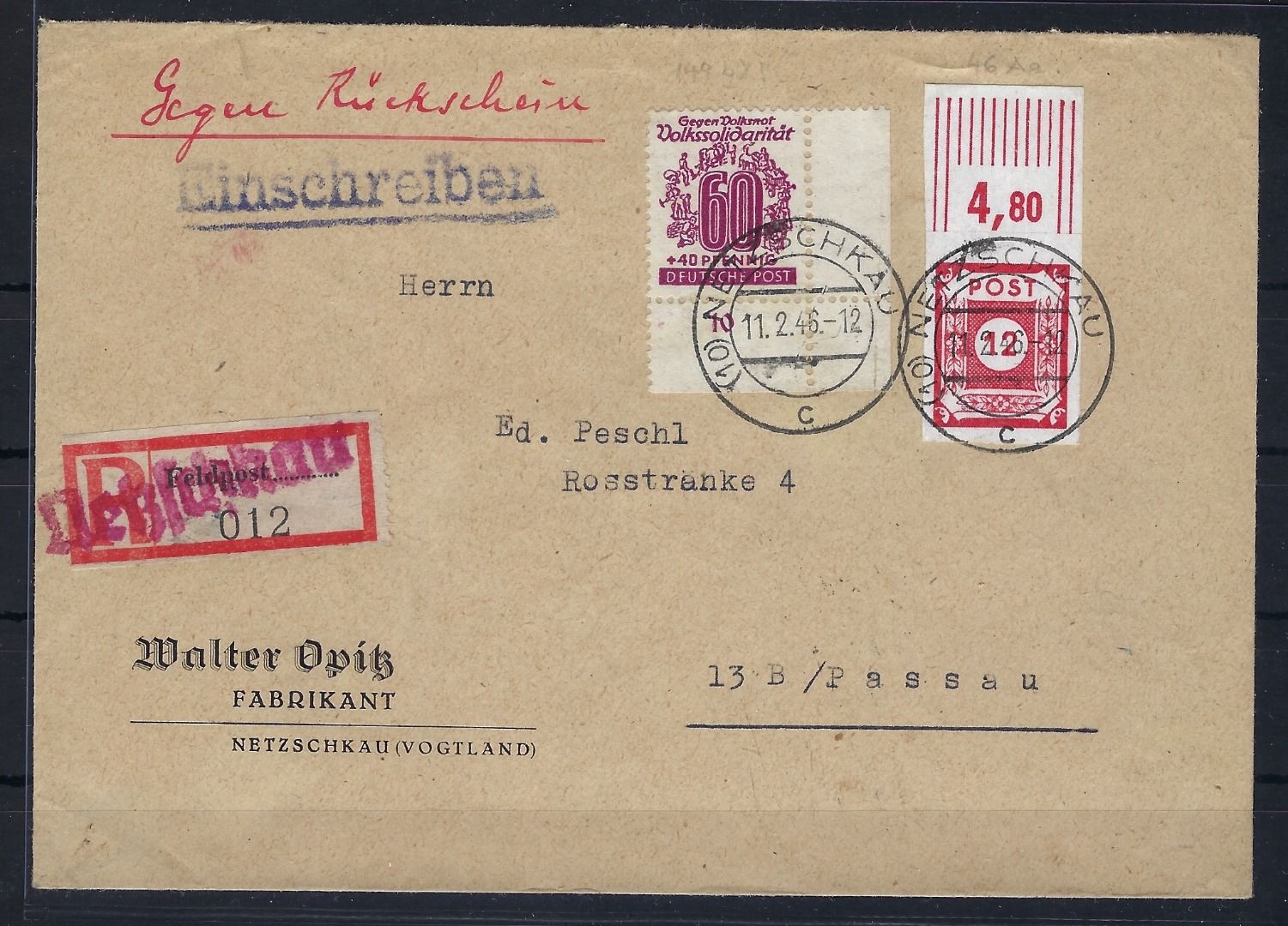SBZ Einschreiben MiF mit Mi 149 Yb PFI Eckrand UR, gep.Ströh BPP