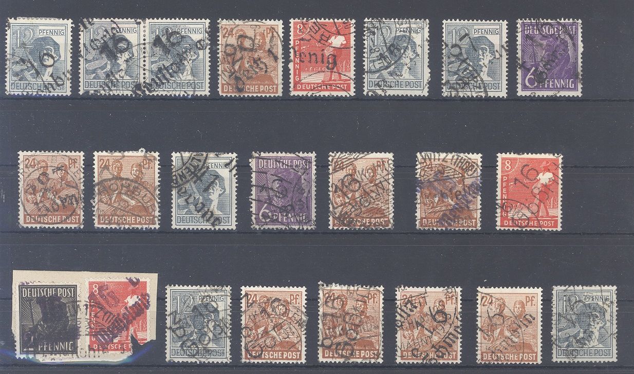SBZ, gestempelter Posten Handstempel Ausgaben mit auch drei Belegen, zwei davon geprüft mit Altprüfungen. Einfach zusammengesteckt, sollte ein nettes Schnäppchen sein