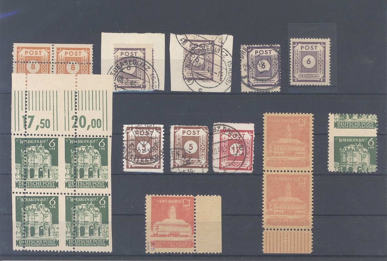 SBZ, netter **/gestempelter Spezialposten aus Michel Nummer 42/65 auf Steckkarte, einfach zusammengesteckt mit auch interessanten Verzähnungen.