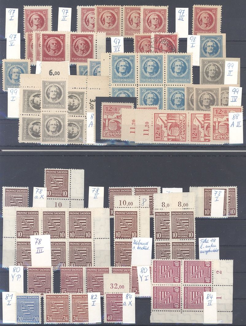 SBZ, umfangreicher **/gestempelter Spezialposten aus Michel Nummer 72/99 auf drei Steckkarten, einfach zusammengesteckt. Vollkommen unberechnet, die Zettel des Sammlers sind dabeibelassen, schöner Stöberposten.