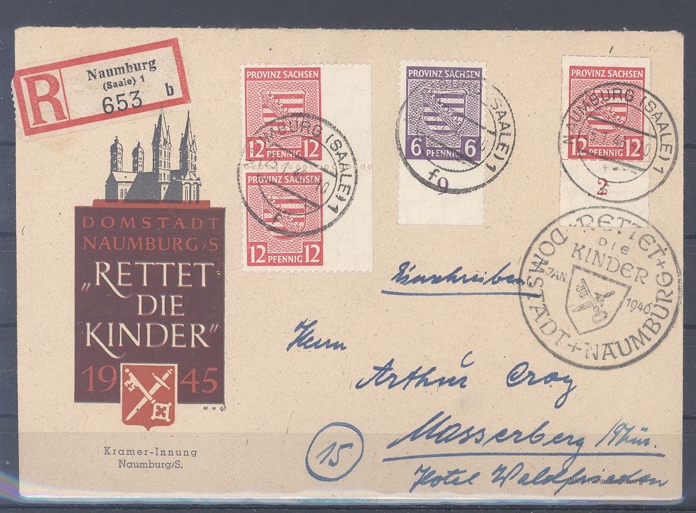 SBZ / Lokalpost Naumburg, dekorativer und interessanter Brief bestückt mit u.a einem Paar Michel Nummer 71 X B, Postmeistertrennung vom Seitenrand und dazu noch einmal die Michel Nummer aus Naumburg. Die beiden losen Marken werten bereits mit 540,00 Euro, schöne Ergänzung zur Sammlung!