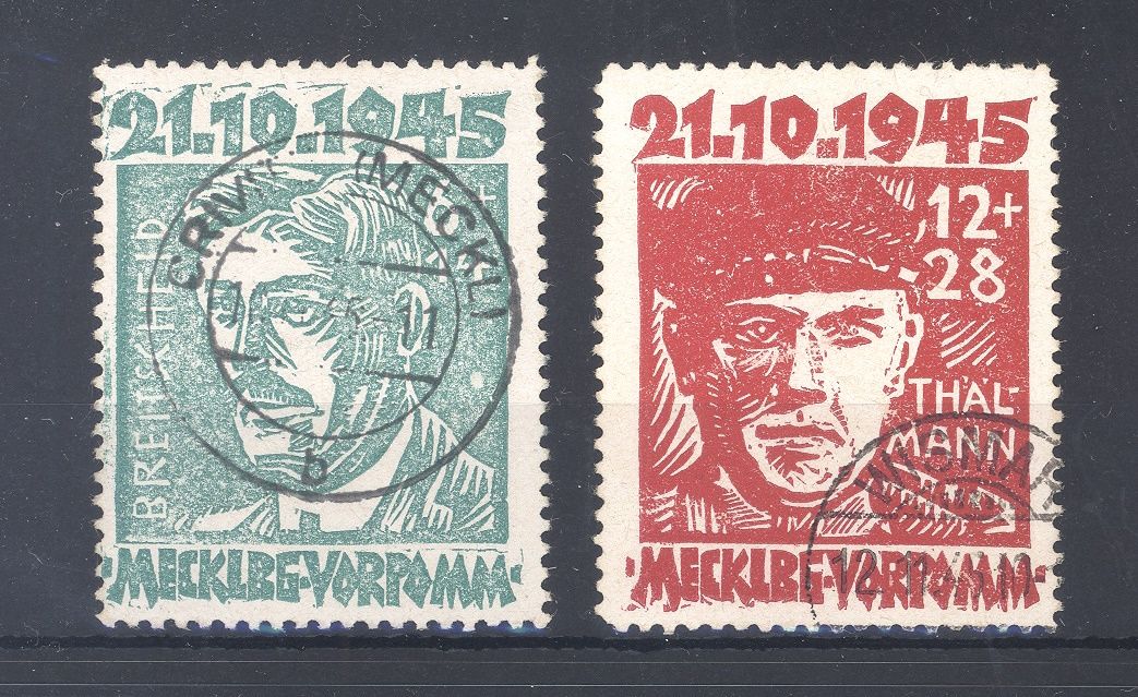 SBZ Michel Nummer 20a VII und 22 aV, zwei Arbarten aus Michel Nummer 20/22, Opfer des Faschismus 1945 gestempelt. Beide Werte sind geprüft BPP.