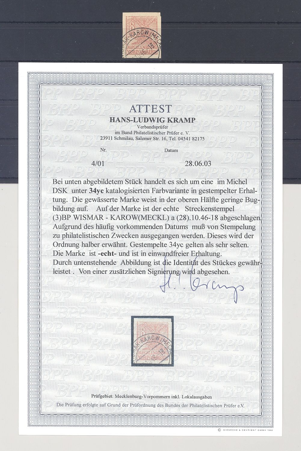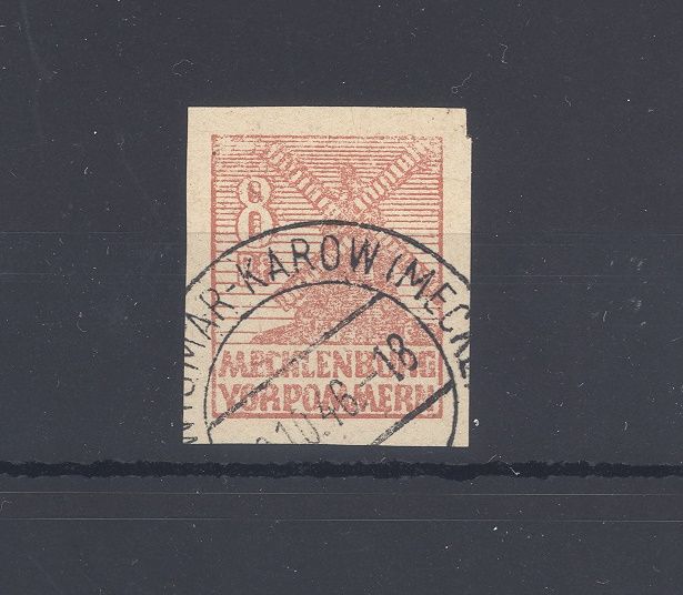 SBZ Michel Nummer 34yc, 8 Pfg. Freimarke dunkles Papier in der sehr seltenen Variante yc gestempelt in sehr ordentlicher Erhaltung mit philatelistischem Stempel. Es liegt ein FA BPP vor, hat bereits einiges gekostet, ist mit eingescannt, Seltenheit!