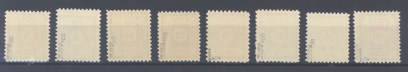 SBZ Michel Nummer 42/50 D, Coswig Freimarken 1945 in der Variante D I und II **, die 15 Pfg. Freimarke ist in der Type D I, die anderen Type D II. Jeder Wert ist geprüft BPP.