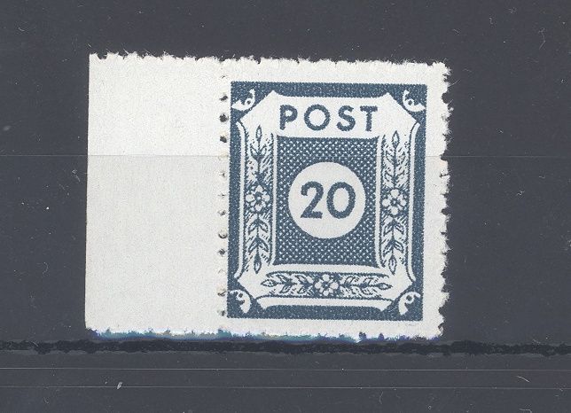 SBZ Michel Nummer 48 F c, 20 Pfg. Freimarke mit Klotzsche Zähnung in der guten Farbe c ** vom Seitenrand. Der Wert ist geprüft BPP.