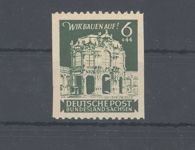 SBZ Michel Nummer64aA Us, 6 Pfg. Freimarke 1946 senkrecht ungezähnt **. Der Wert ist geprüft BPP.