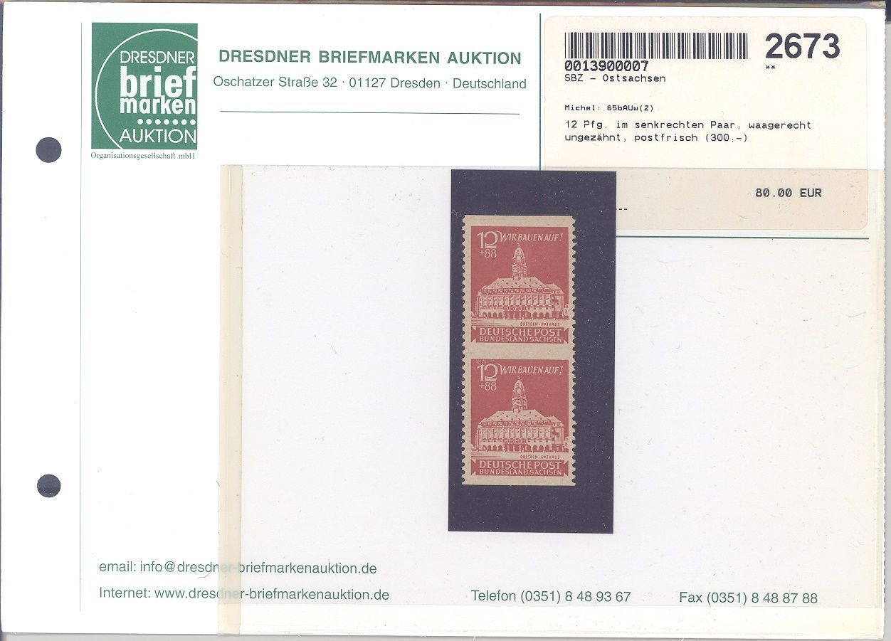 SBZ Michel Nummer 65b A Uw, 12 Pfg. Freimarke 1946 als waagerecht ungezähnt als Paar **. War einmal ein Auktionslos mit 80,00 Euro Ausruf zzgl. 20 % Aufgeld.
