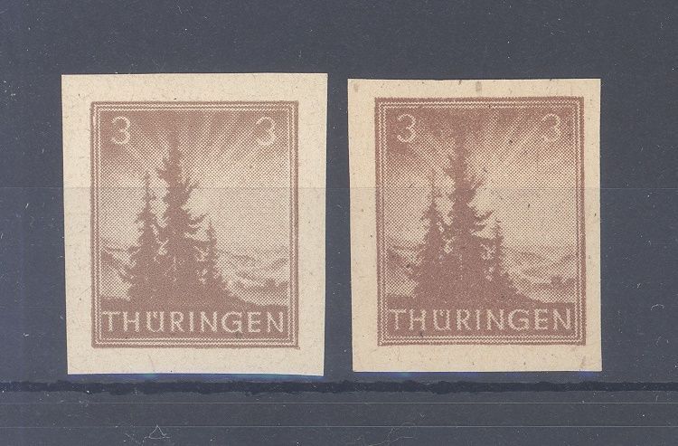 SBZ Michel Nummer 92 AX ap2 U uimd 92 AY az 2 U **, zwei ungezähnte Werte aus Freimarken 1945 als Posten. Beide Werte sind geprüft BPP.