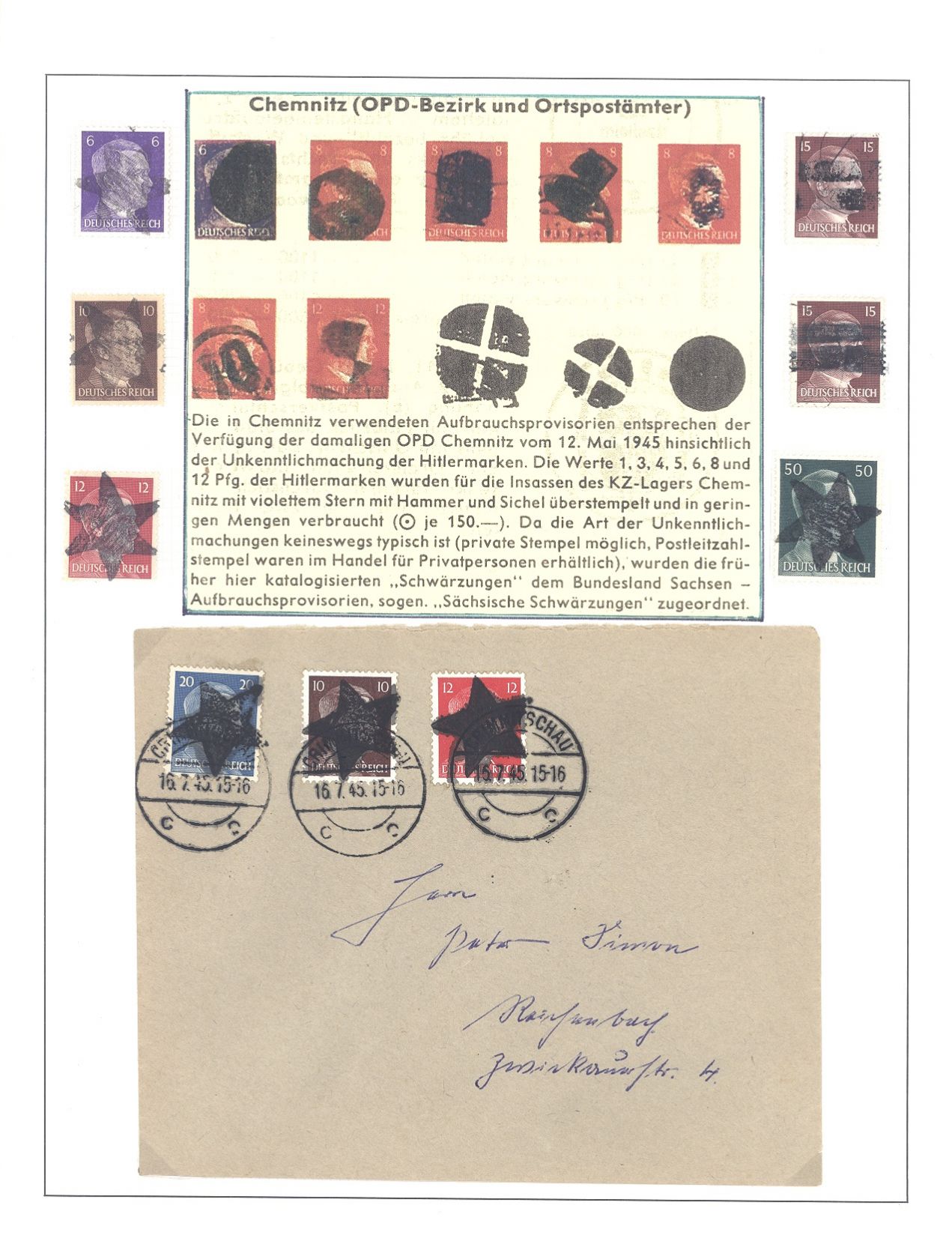 SBZ, sächsische Schwärzungen, zwei Sammlerblätter mit interessantem Bestand, dabei auch ein Brief.