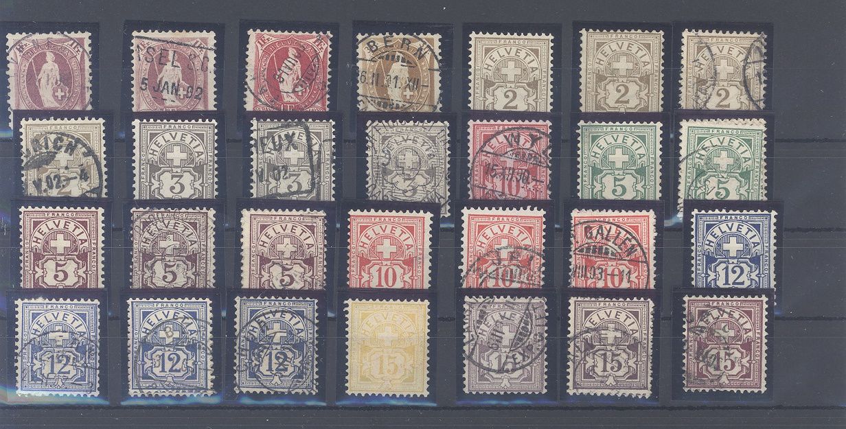 Schweiz, umfangreicher */gestempelter Posten aus den Jahren 1884/1899 auf drei Steckkarten, einfach zusammengesteckt. Vollkommen unberechnet, sollte ein nettes Schnäppchen sein