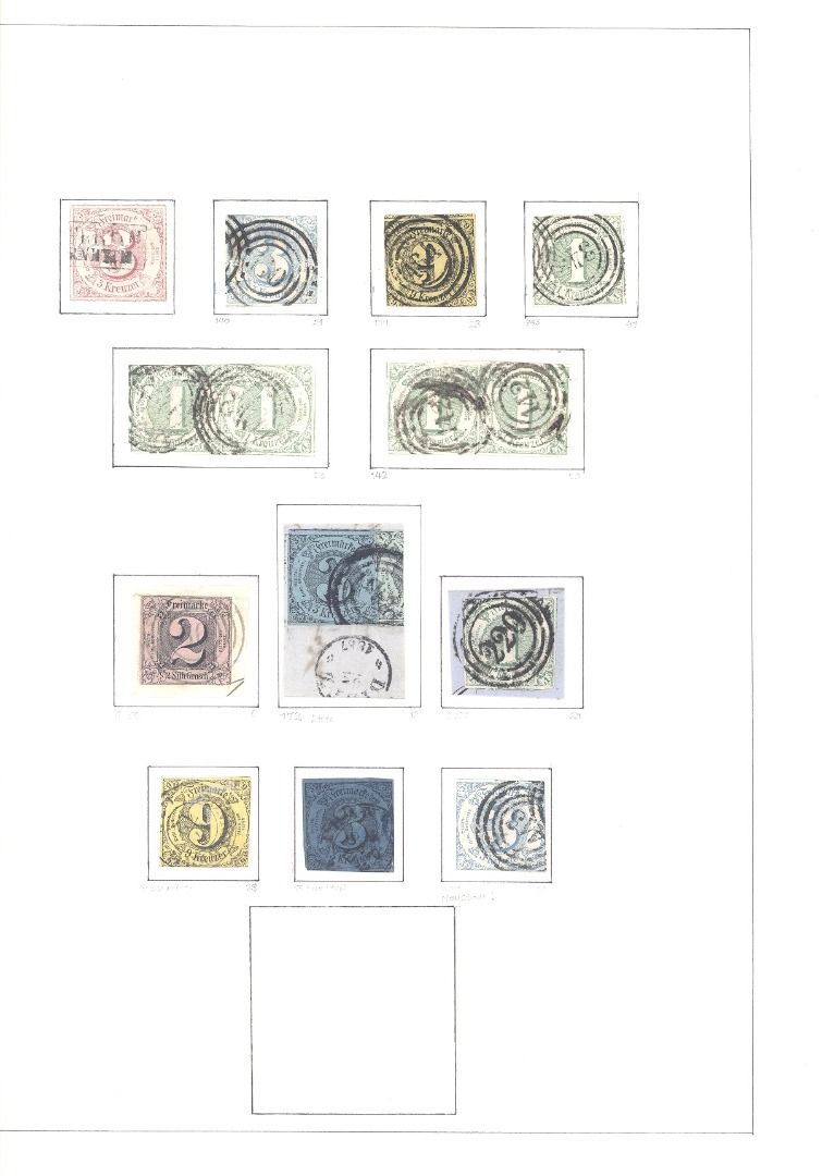 Thurn & Taxis, schöner Posten mit Briefstücken auf Seite, dabei auch zwei Paare, Briefstücke und ein Ortstempel.