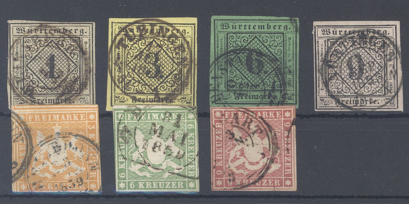Württemberg Mi.Nr. 1/4 und 7/9 aus Freimarken 1851/57 gestempelt