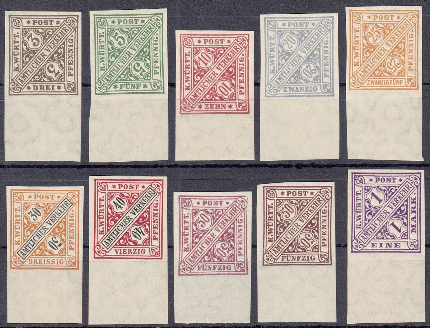 Württemberg Michel Nummer 228/36 U aus Dienst 1906 ** einheitlich vom Unterand. Sehr nette Ergänzung zur Sammlung!