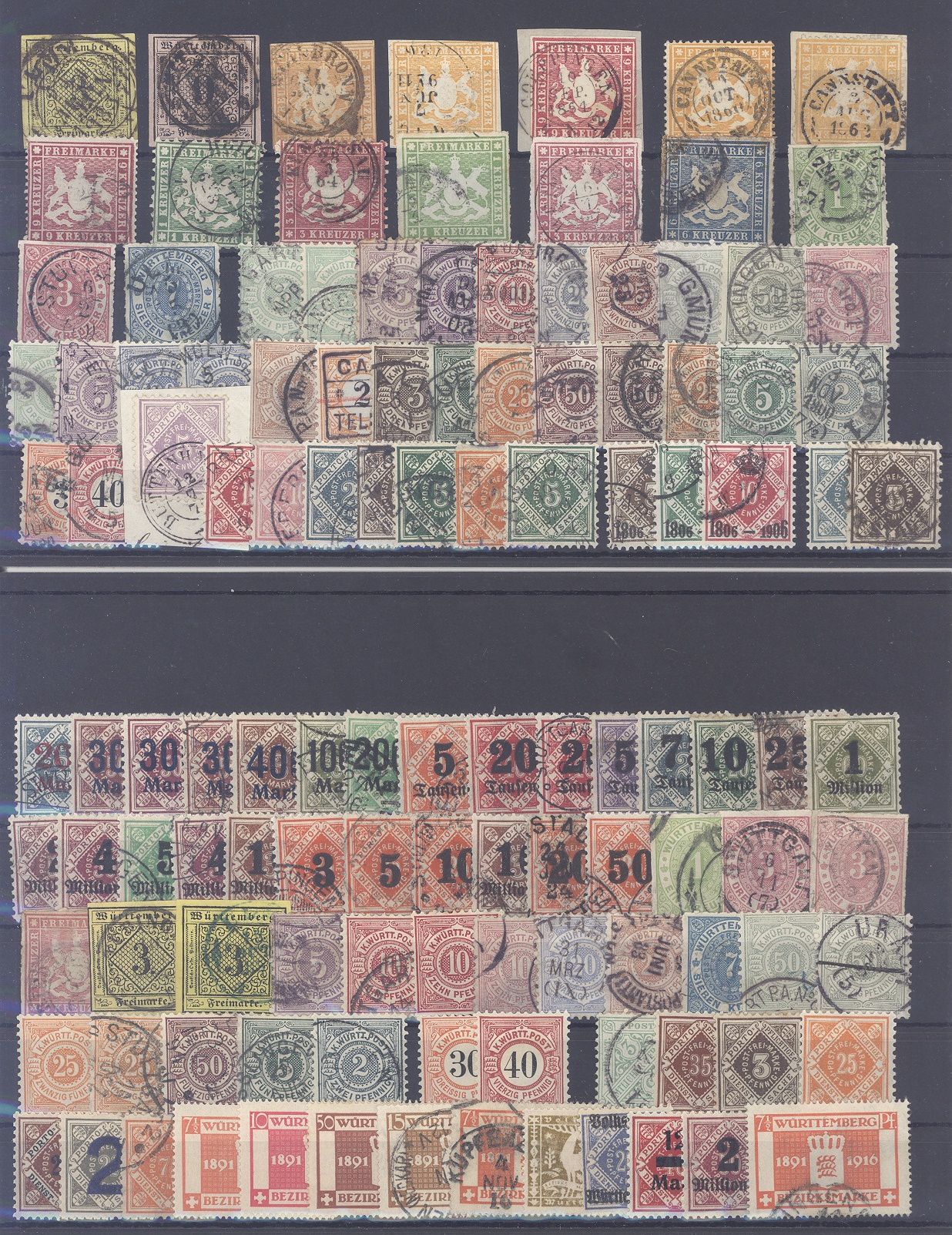 Württemberg, umfangreicher Posten beginnend ab den Kreuzer Ausgaben auf fünf Steckkarten. Einfach zusammengesteckt, sollte bereits aufgrund der Materialfülle ein nettes Schnäppchen sein!