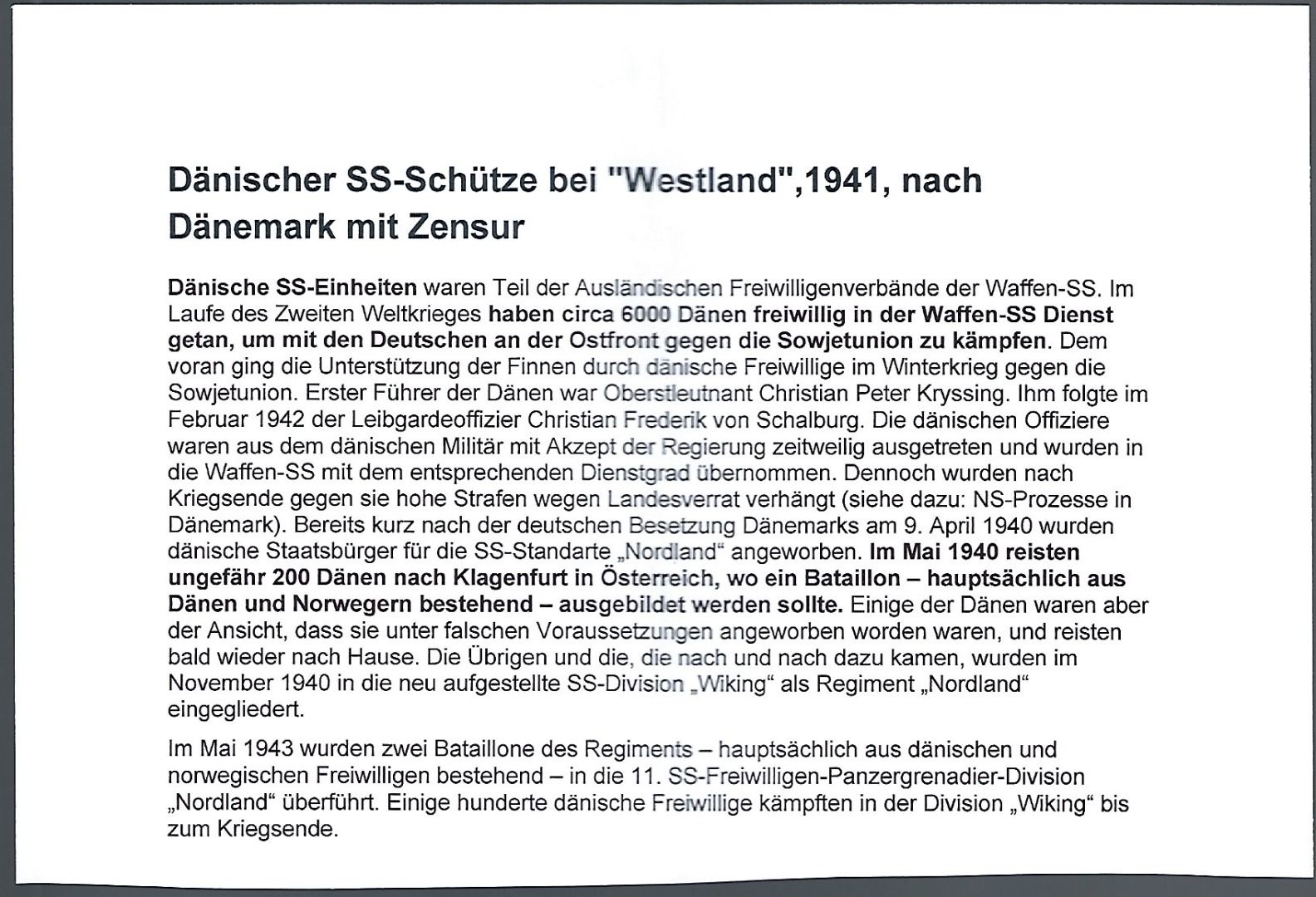 Feldpost Dänischer SS-Schütze „Westland“ 1941, Zensur