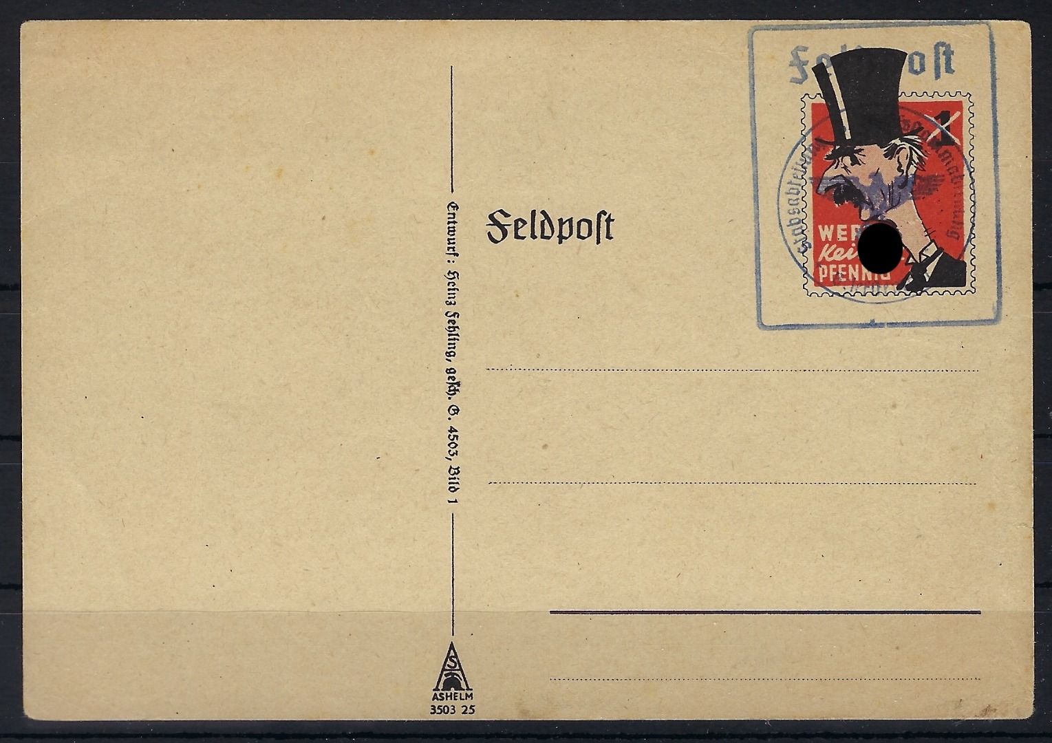 Feldpost-Spottbrief „Chamberlain“ Wert keinen Pfennig, mit FP-Stempel