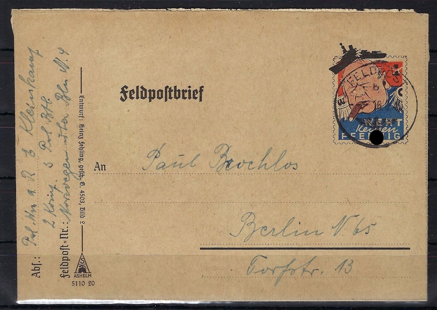 Feldpost-Spottbrief „Winston Churchill“ Wert keinen Pfennig, aus Norwegen 1940