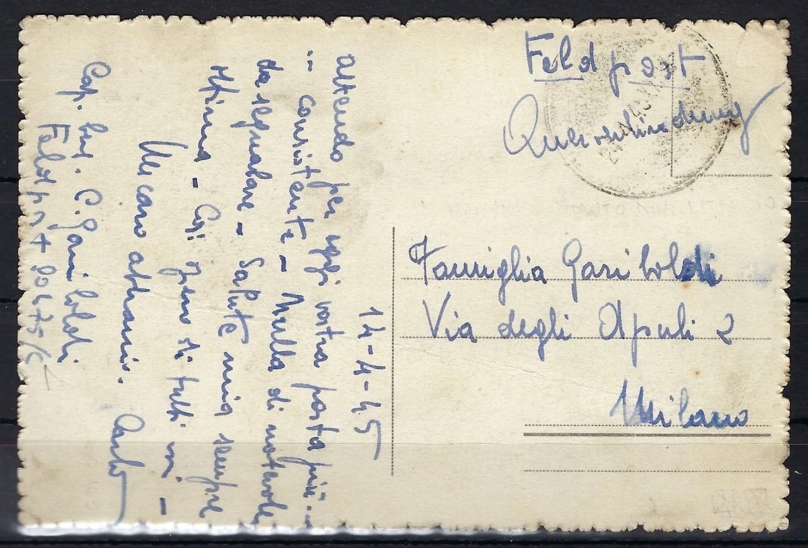 FP 80475 C, Küsten-Festungs-Bataillon Italien, 14.4.45, nach Mailand