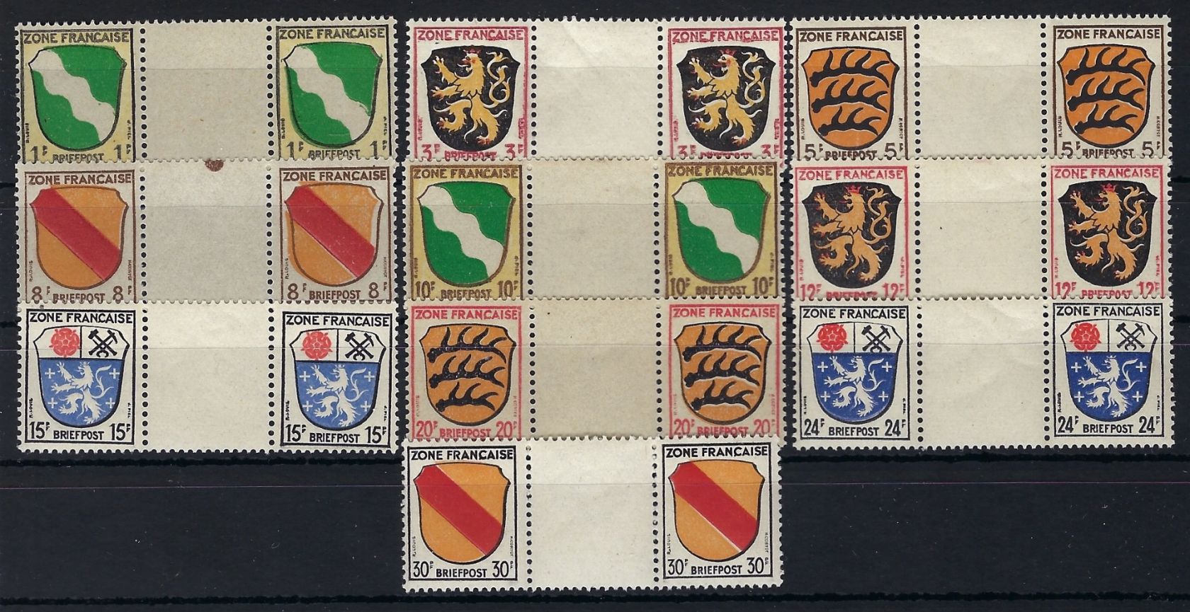Fr. Zone Allg. Ausgaben Mi 1 - 10 ZW postfrisch, kompletter Satz mit Zwischenstegen, Mi 9 und 10 etwas angefaltet, sonst einwandfrei