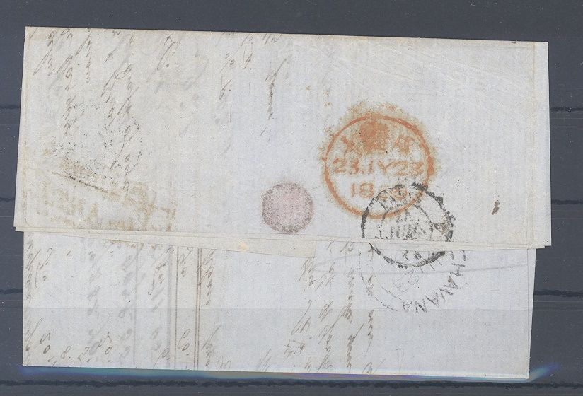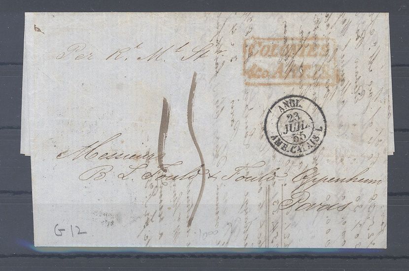 Frankreich, sauberer Brief aus dem Jahr 1855 mit rotem Zweizeiler Colonies nach Paris mit diversen rückseitigen Stempeln gelaufen. Selten einmal angeboten!