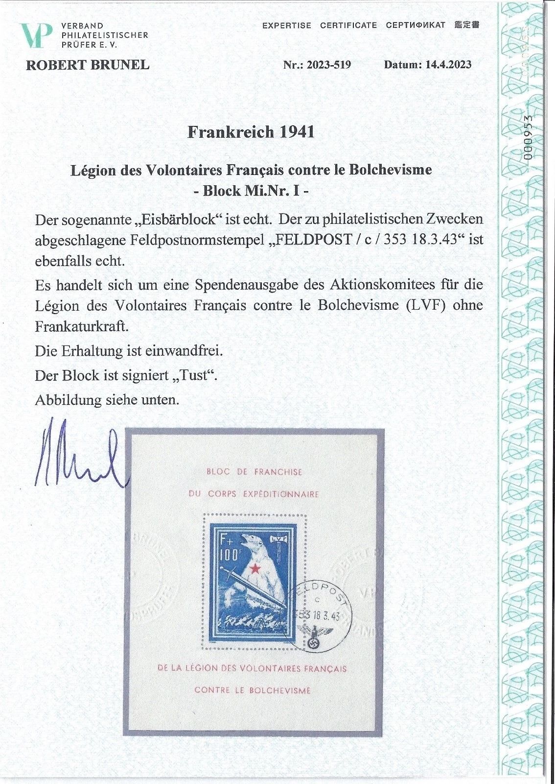 Frankreich Privatausgaben Block I ° einwandfrei, Expertise Brunel VP