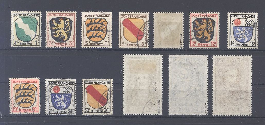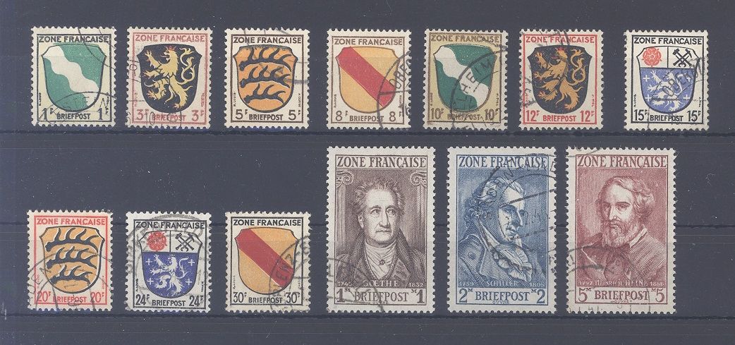 Französische Zone Allg. Ausgaben Michel Nummer 1/13, Freimarken 1945 gestempelt. Alle wichtigen Werte sind geprüft BPP.